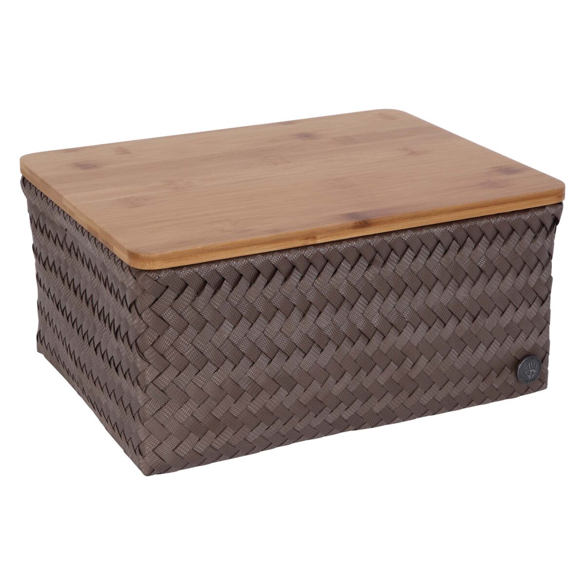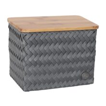 Le plus petit panier convient pour être posé sur le bureau ou le comptoir et se prête parfaitement pour le rangement des petits objets. Un rangement à l’abri des regards grâce à son couvercle en bambou.