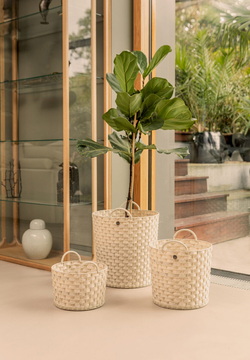 La collection ‘Grand’ de Handed By consiste en des paniers luxueux, durables et uniques. Cette collection complète est tressée à la main et fabriquée à partir de plastique recyclé.